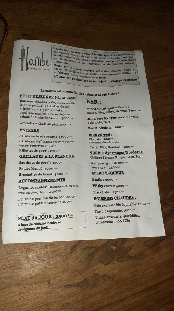 On ne voulait plus partir et si on le pouvait, on aurait revu nos plans de voyage pour pouvoir rester une nuit de plus à Ségou. On a été ravies de faire la connaissance du propriétaire, Kibarou Anicet Déna, originaire de la région, qui nous a raconté un peu l’histoire de son hôtel et expliqué l’une de ses particularités : son importance dans le paysage culturel local. En fait, de nombreux événements et concerts s’y sont tenus, et beaucoup d’artistes y ont été de passage ! D’ailleurs, il nous a invitées aux 10 ans de l’hôtel qu’ils fêteront le mois prochain, en janvier 2022.